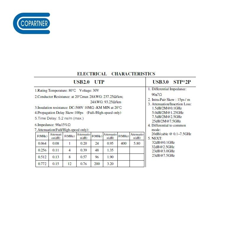 - Kabelaufdruck (Marking): USB 3.0 Cable E119932 AWM 20276 80℃ 30V VW-1 COPARTNER