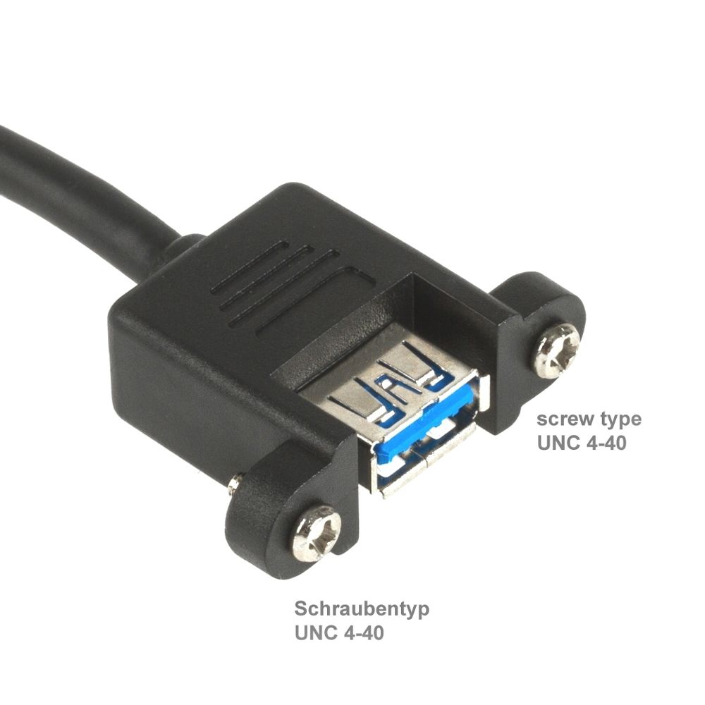 USB 3.0 Montagekabel A-Buchse anschraubbar an A-Stecker 40cm Schraubenabstand 26mm