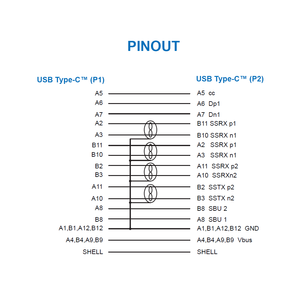 - beidseitig Stecker Typ C (type-C™), männlich