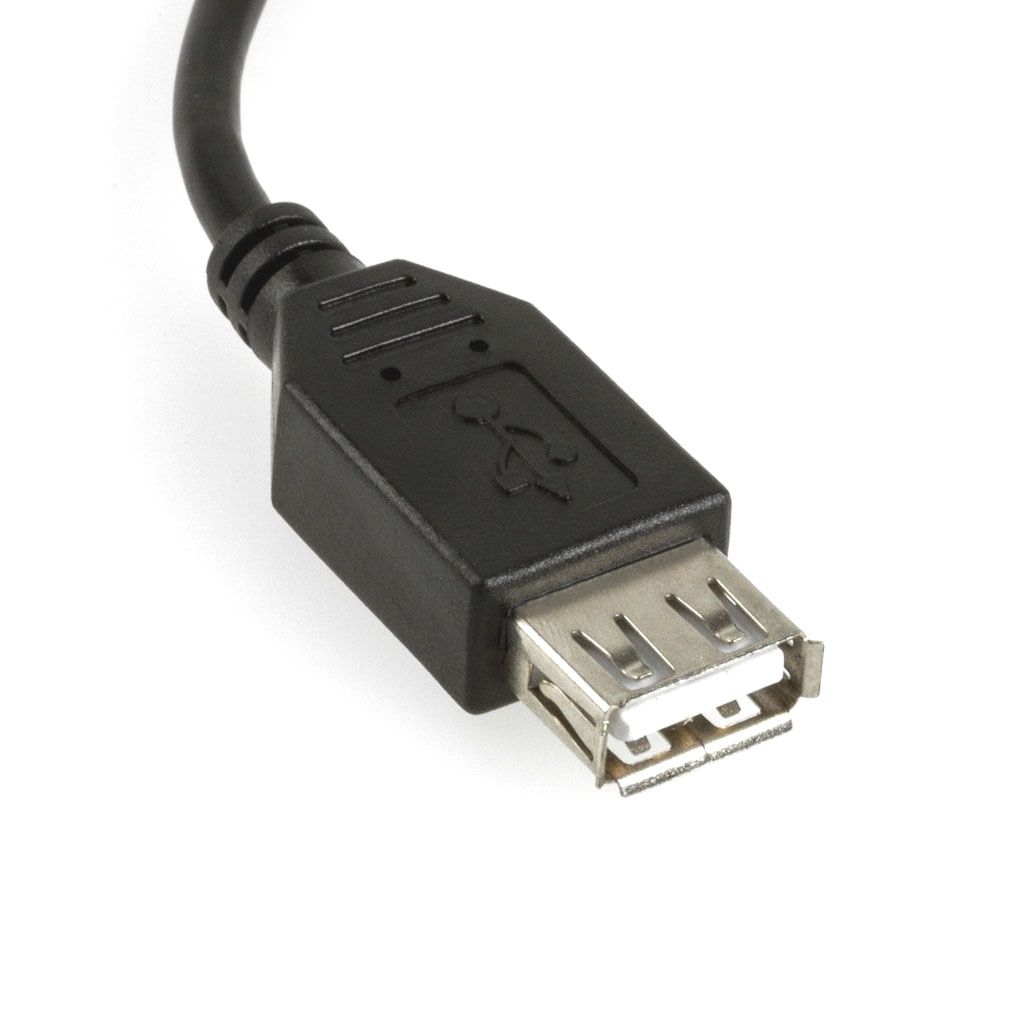 Spezielles Adapterkabel, welches mit dem sehr kleinen Micro-USB-Stecker (Typ B) ausgestattet ist. Auf der anderen Kabelseite befindet sich eine Buchse für USB A.