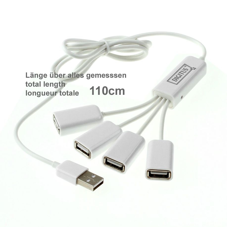 USB-HUB Verteilerkabel, 4 Ports, USB 2.0 kompatibel, bis 480 MBit/s, arbeitet "bus powered" (ohne Netzteil), USB 2.0 kompatibel, weiss