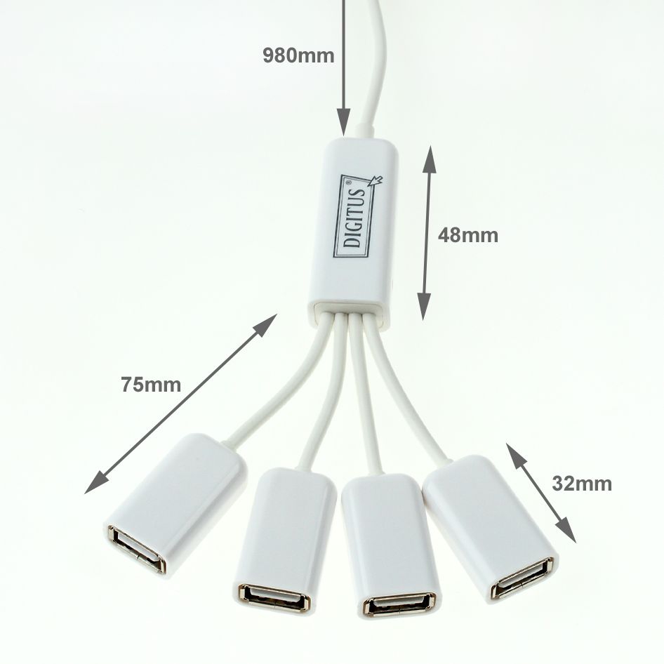 USB-HUB mit 4 Port als Kabellösung DIGITUS Slim Spider