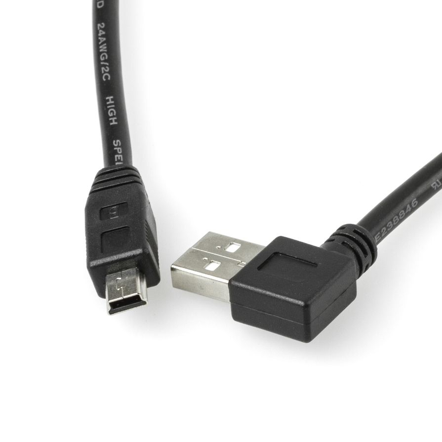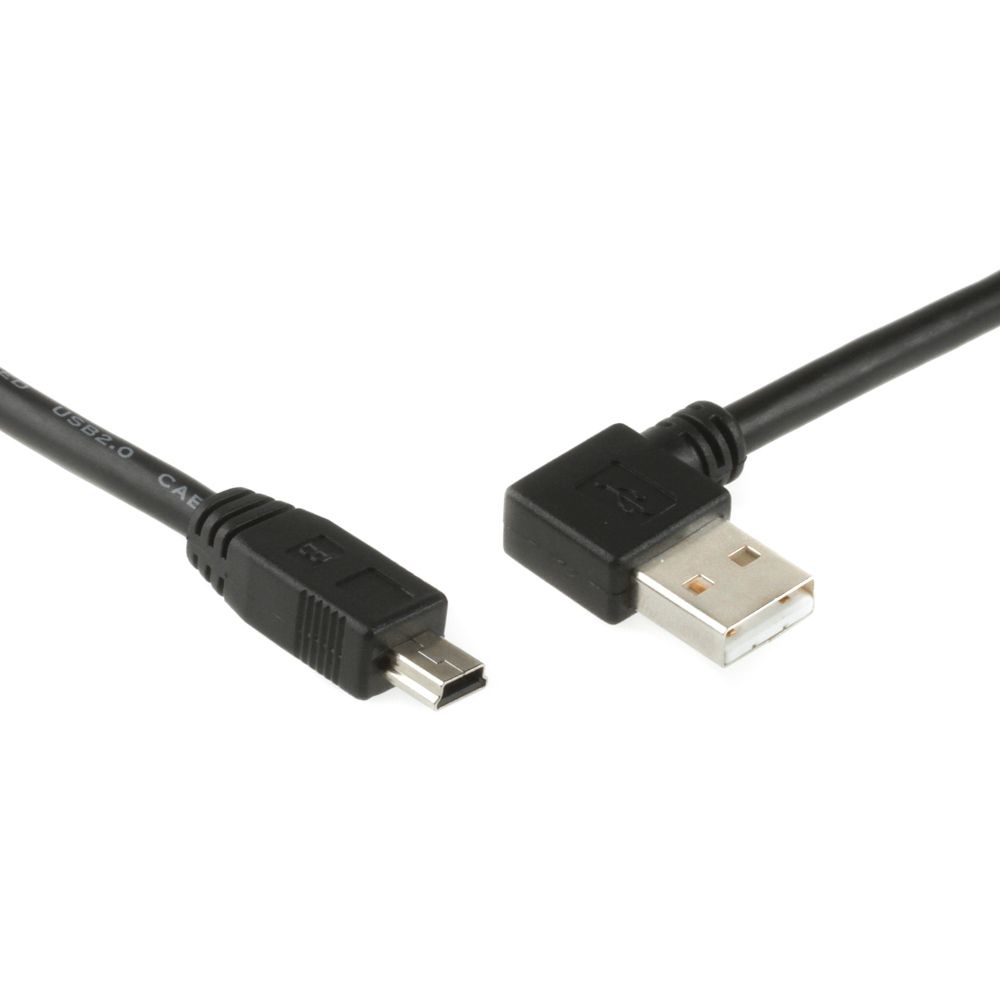 Mini-USB-Kabel: USB-A-Stecker 90° LINKS gewinkelt an Mini-B-Stecker gerade (5-polig), Länge: 50cm, schwarz