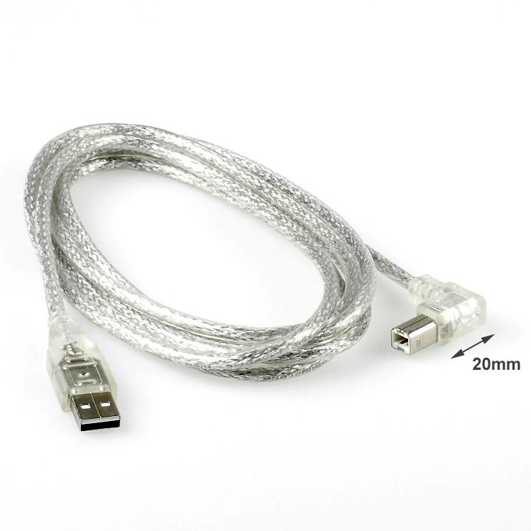 Das hier angebotene USB-2.0-Kabel hat einen um 90° abgewinkelten USB-Stecker Typ B. Dadurch eignet sich das Kabel besonders für den platzsparenden Anschluss von USB-Geräten. Der Stecker-Überstand ist nur ca. 20mm.
