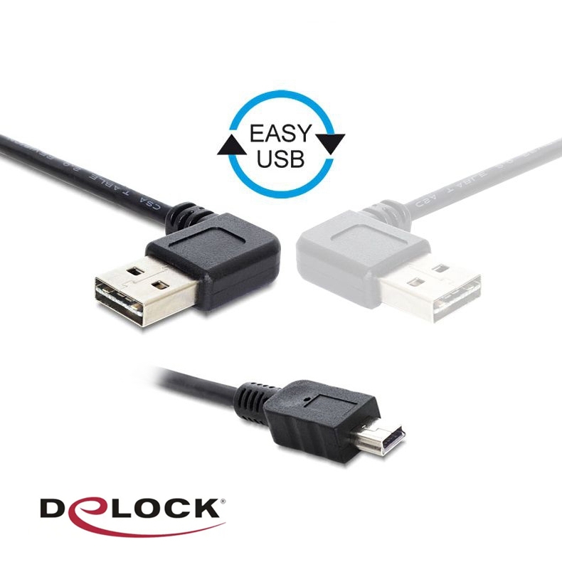 USB-Kabel Mini B auf A 90°, A nach rechts od. links gewinkelt einsteckbar, 1m