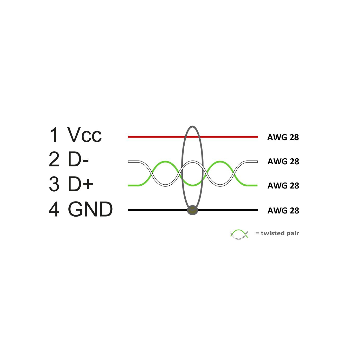 - Leitungs-Durchmesser: AWG28 (7/0.12BCx1P) + 28AWG (7/01BCx2C)