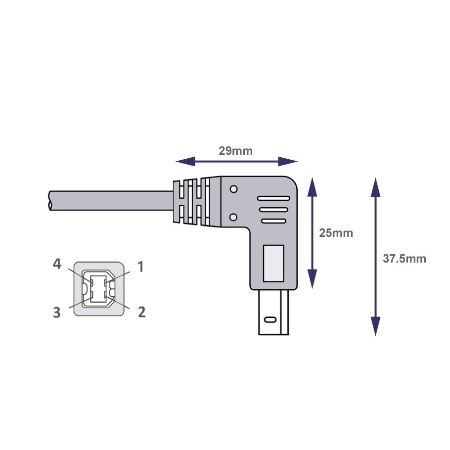 USB-Kabel Stecker B 90° abgewinkelt nach UNTEN 100cm