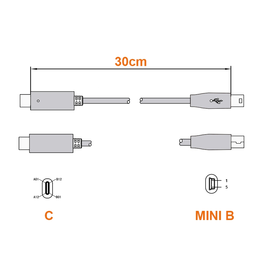 USB-Kabel Type-C™ Stecker auf Mini B Stecker 30cm