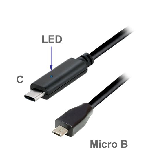 USB-Kabel Type-C™ Stecker mit LED auf Micro B Stecker 1m