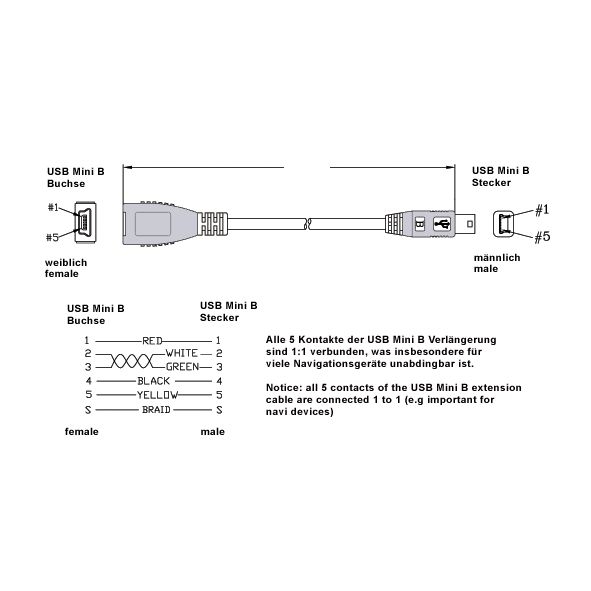 - USB Mini B männlich (5-polig) an USB Mini B weiblich (5-polig)