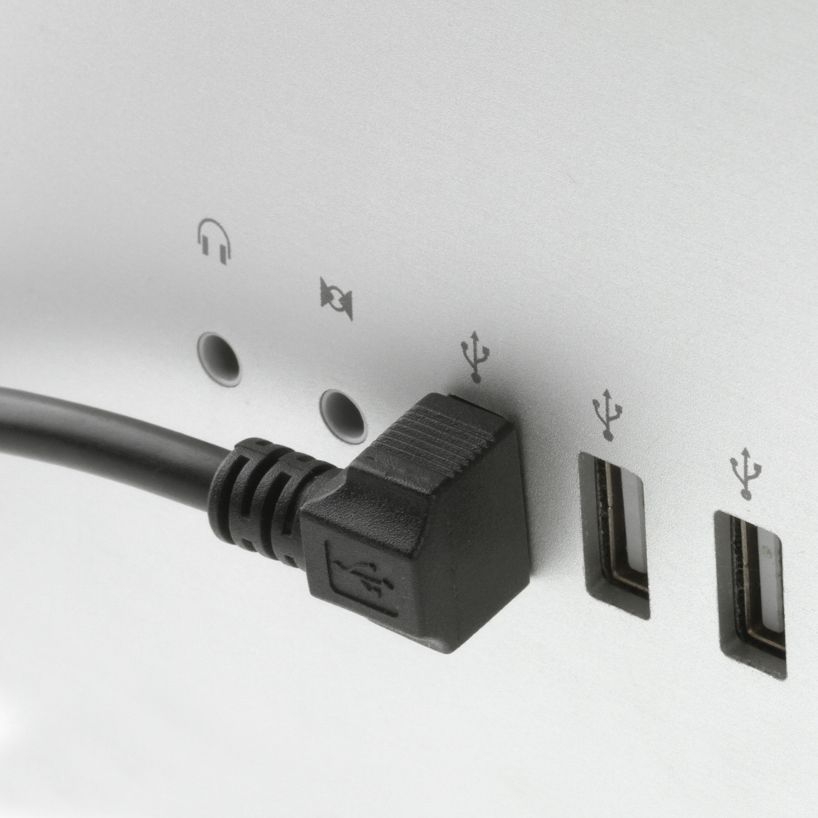 - besonders platzsparende 90° Bauform des USB A Winkelsteckers