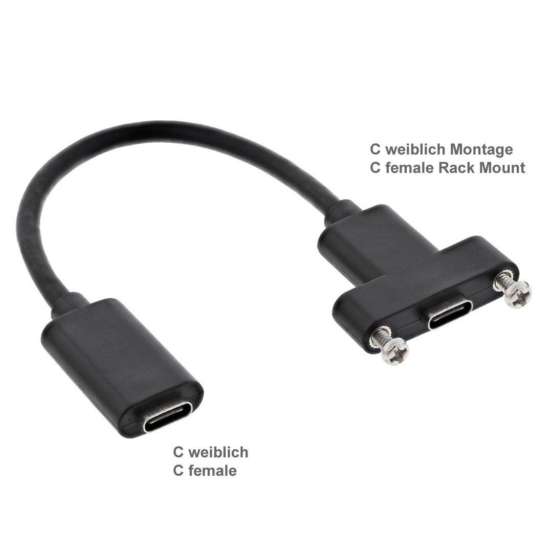 USB Type-C™ Panel Montagekabel, Type-C™ Buchse anschraubbar an Type-C™ Buchse, kurzes Kabel, 20cm