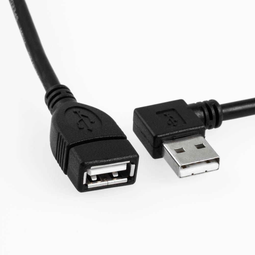 Abgewinkelte USB-Verlängerung: A-Winkelstecker (90° nach LINKS gewinkelt) an A-Buchse gerade, Kabel Länge 2m