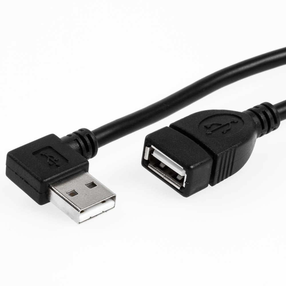 Abgewinkelte USB-Verlängerung: A-Winkelstecker (90° nach LINKS gewinkelt) an A-Buchse gerade, Kabel Länge 3m