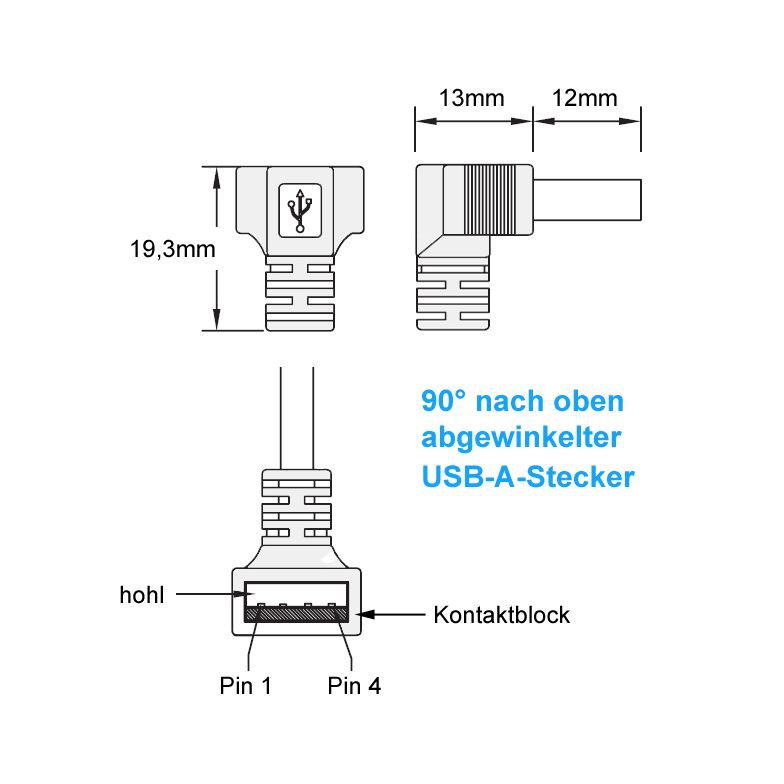 - USB-Stecker Typ A 90° nach oben gewinkelt