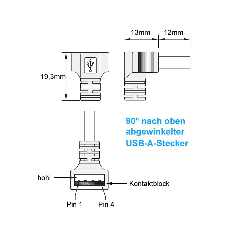 - USB-Stecker Typ A 90° nach oben gewinkelt