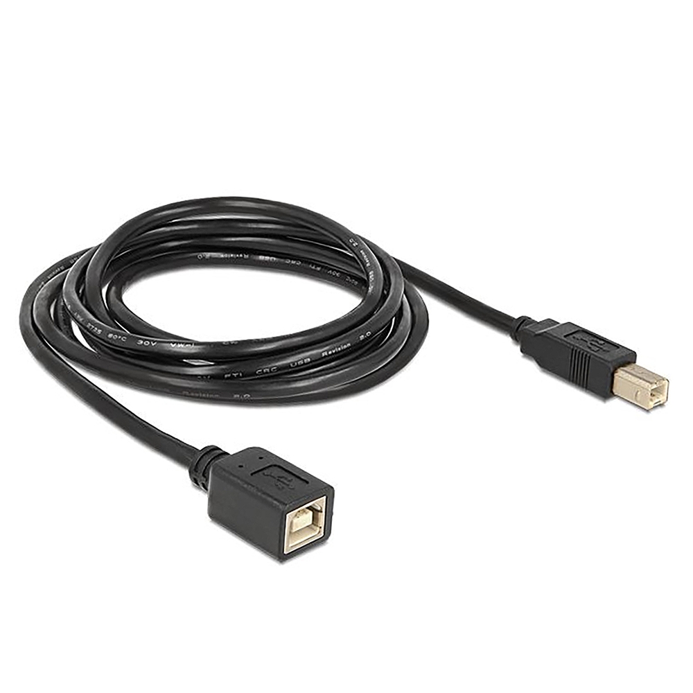 USB-Verlängerungskabel VERSION BB: USB-B-Stecker an USB-B-Buchse, 2m, USB 2.0 kompatibel, 480 MBit/s, 28AWG/1P + 24AWG/2C, Farbe: schwarz