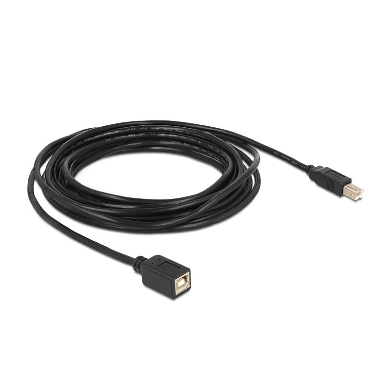 USB-Verlängerungskabel VERSION BB: USB-B-Stecker an USB-B-Buchse, 5m, USB 2.0 kompatibel, 480 MBit/s, 28AWG/1P + 24AWG/2C, Farbe: schwarz
