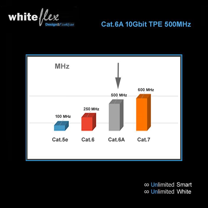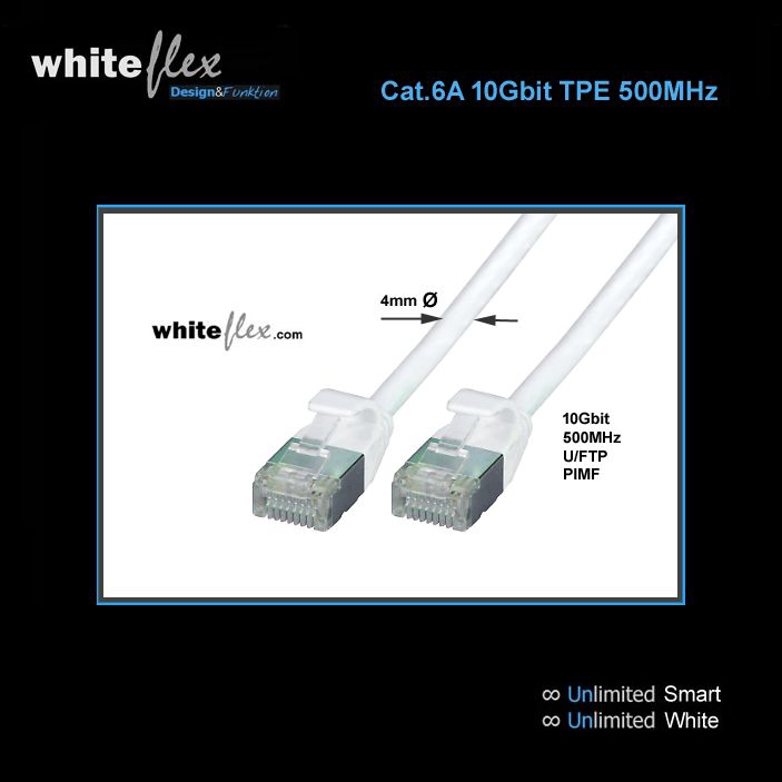 WHITEFLEX Cat.6A Patchkabel, 1m, weiss + flexibel, 10Gbit, 500MHz, Ø 4mm, U/FTP PiMF, TPE Mantel