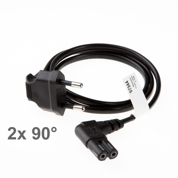 2-pol. Stromkabel mit EURO-8-Stecker BEIDSEITIG GEWINKELT 75cm