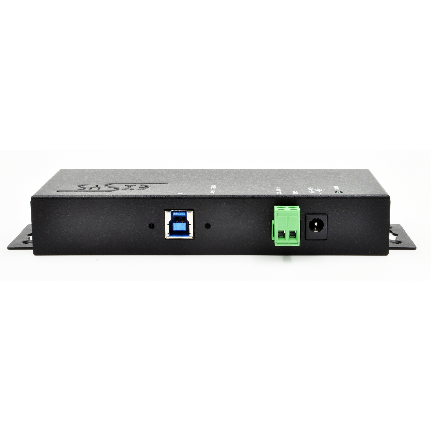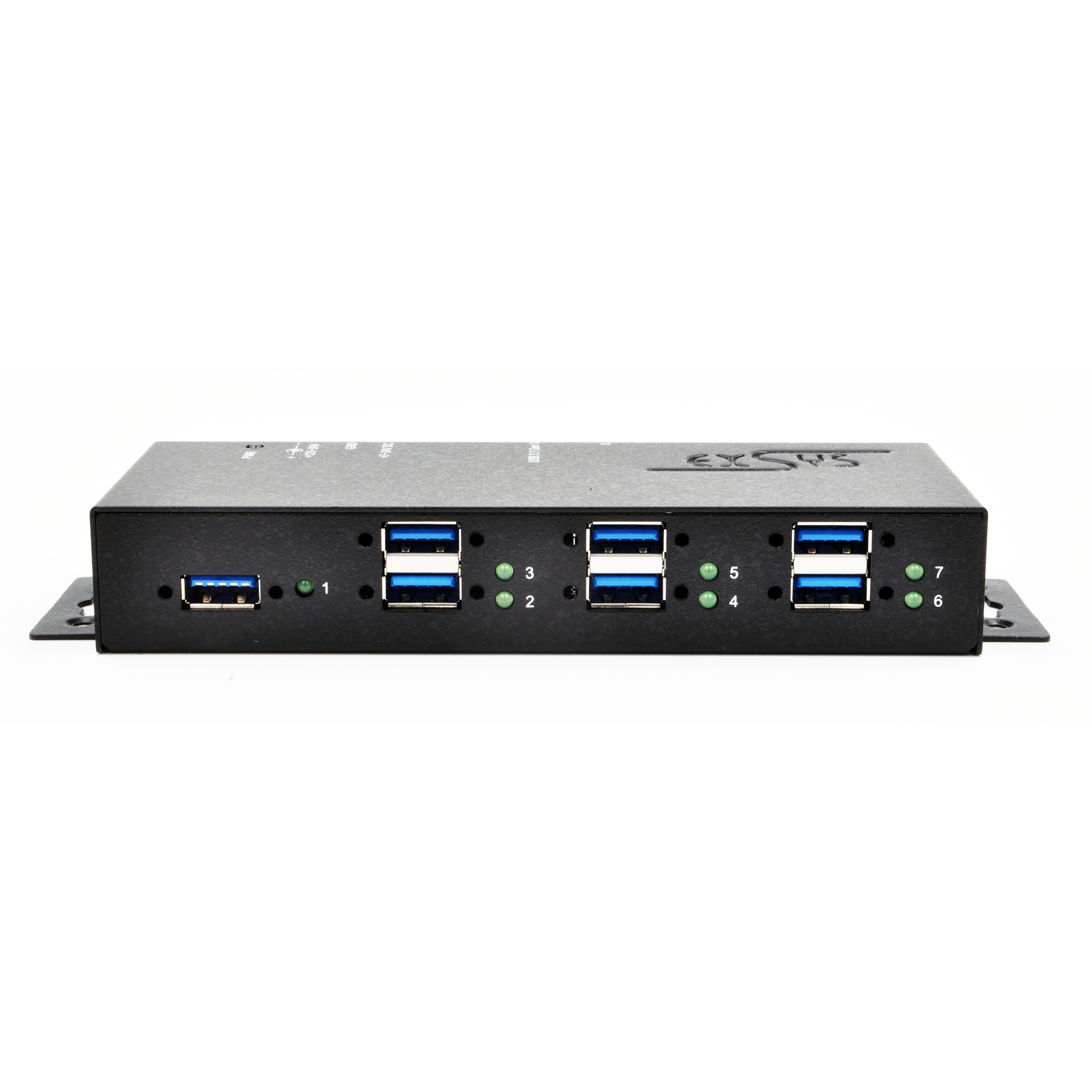 Der EX-1189HMVS-3 stellt 7 verschraubbare USB 3.2 Gen 1 (vorher genannt USB 3.0) Downstream-Ports mit 15KV ESD Überspannungsschutz für jeden Ausgang zur Verfügung. Dabei stellt er gleichzeitig für bis zu 4 Ports 1.5A Strom zur Verfügung zum Aufladen von iPhone, iPad, Smartphone und Tablet. Das mitgelieferte Kabel EX-K1571V kann ohne Schraubenzieher am EX-1189HMVS-3 mit Rändelschrauben befestigt werden. Er kann in Automatisierung, Industrie- und Büroanwendungen eingesetzt werden. Dank seinem speziellen Gehäuse kann der EX-1189HMVS-3 an die Wand, unter einen Tisch oder in ein 19" Schrank (optional mit EX-6099) geschraubt werden.