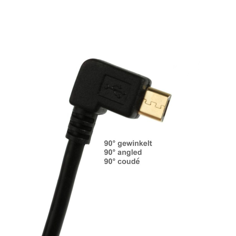 - geräteseitiger Anschluß: USB 2.0 Micro B Stecker 90° gewinkelt NACH RECHTS