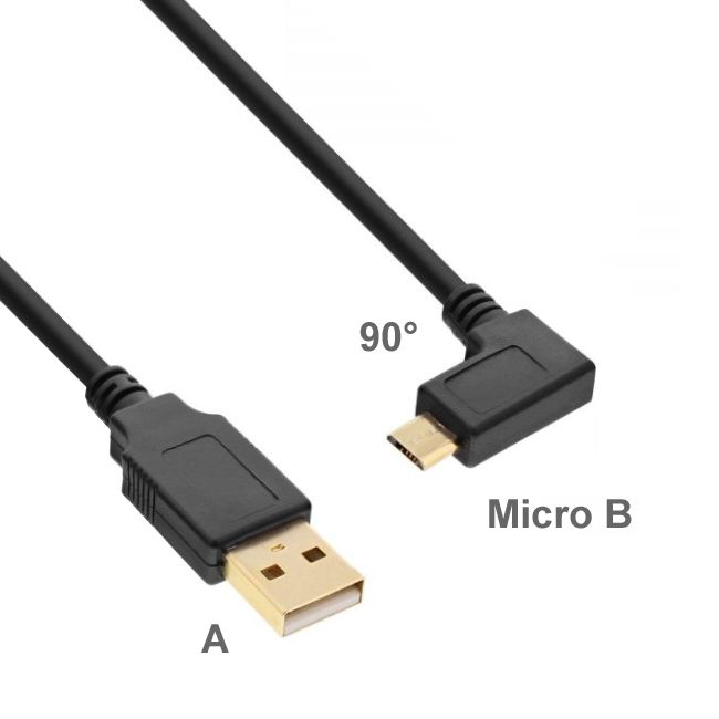 - Anschlüsse: USB-A Stecker an USB Micro-B Stecker gewinkelt NACH RECHTS