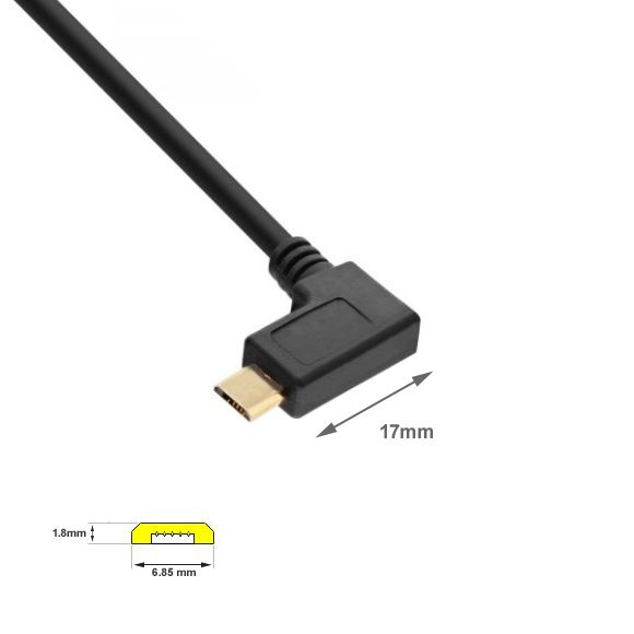 - Anschlüsse: USB-A Stecker an USB Micro-B Stecker gewinkelt NACH RECHTS