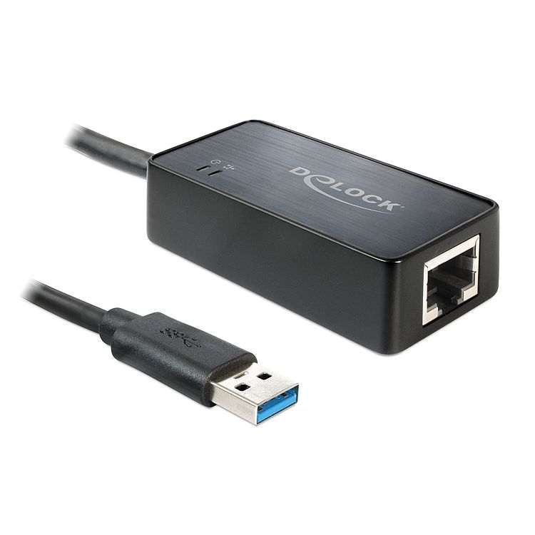 Adapter USB 3.0 auf Gigabit LAN mit langem USB-Kabel (0.5m) , 10/100/1000 Mbits/s mit Full/Half duplex, arbeitet BusPowered, Markenprodukt von DELOCK
