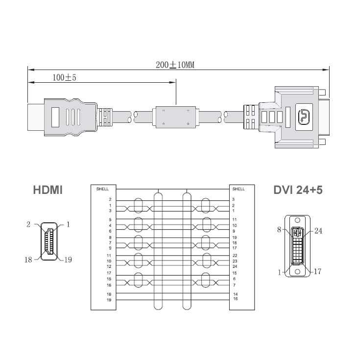 - rein digitale Übertragung von Videodaten wegen HDMI-Adaptierung (somit DVI-D, Single Link, VGA nicht beschaltet)