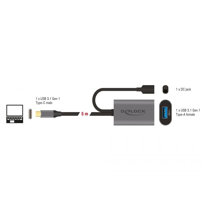 Aktives USB 3.1 Gen 1 Verlängerungskabel USB Type-C™ zu USB Typ-A 5 m
