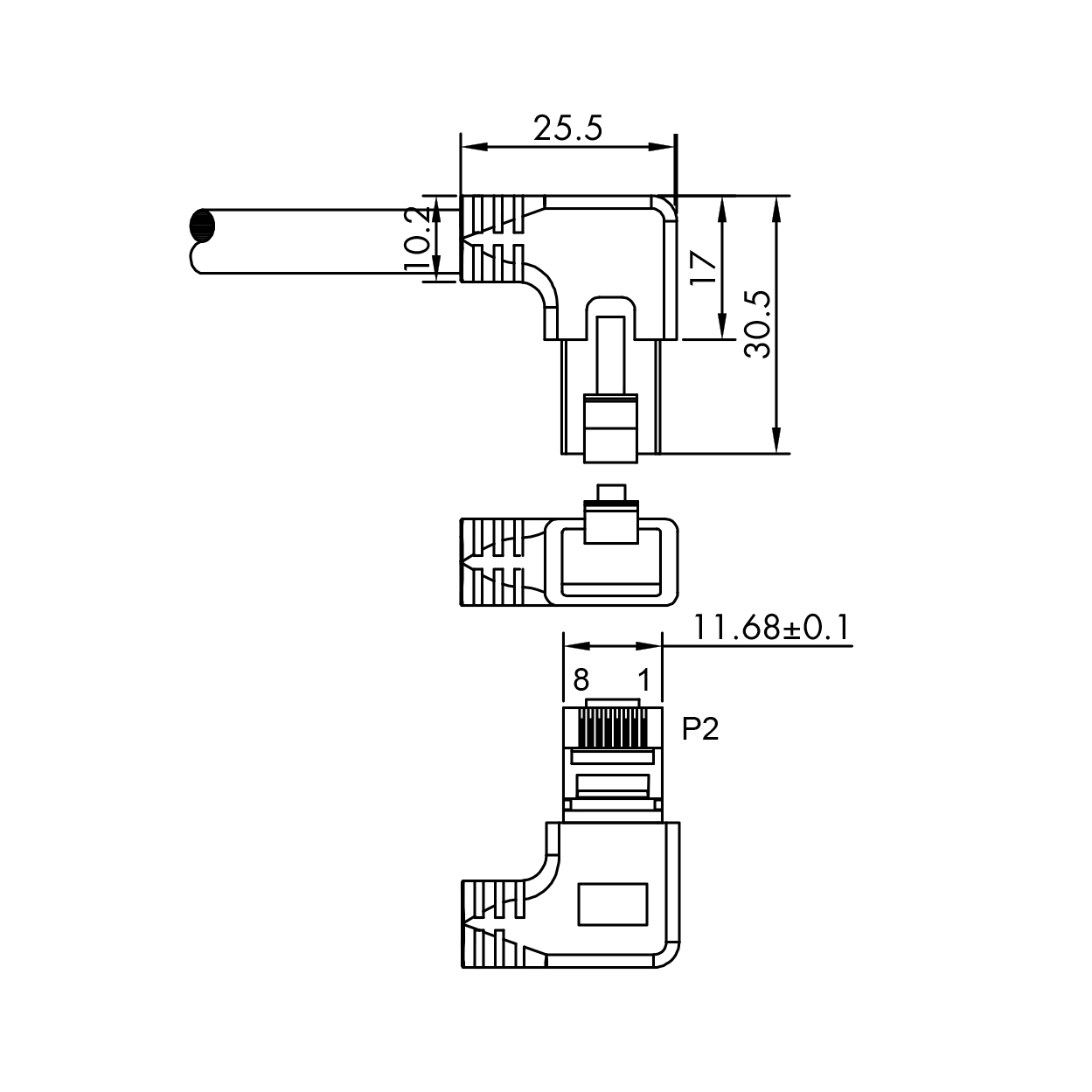 - RJ45 Netzwerk-Stecker mit belastbarer Knickschutztülle