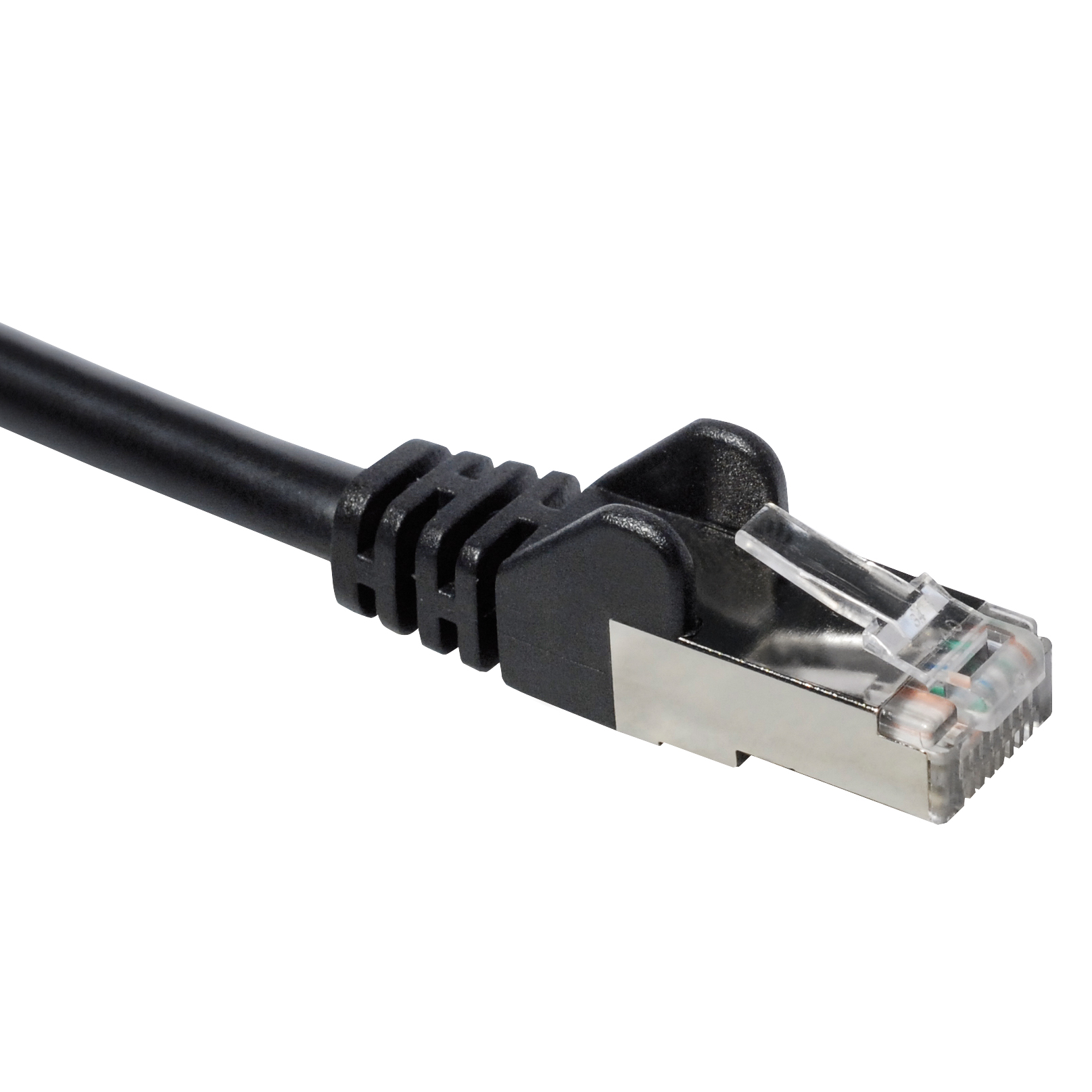 Netzwerkkabel Cat.6A, 1x RJ45 Stecker NACH UNTEN 90° abgewinkelt, 1x Stecker RJ45 gerade, AWG26 (CU), S/FTP (PIMF), schwarz, 1m