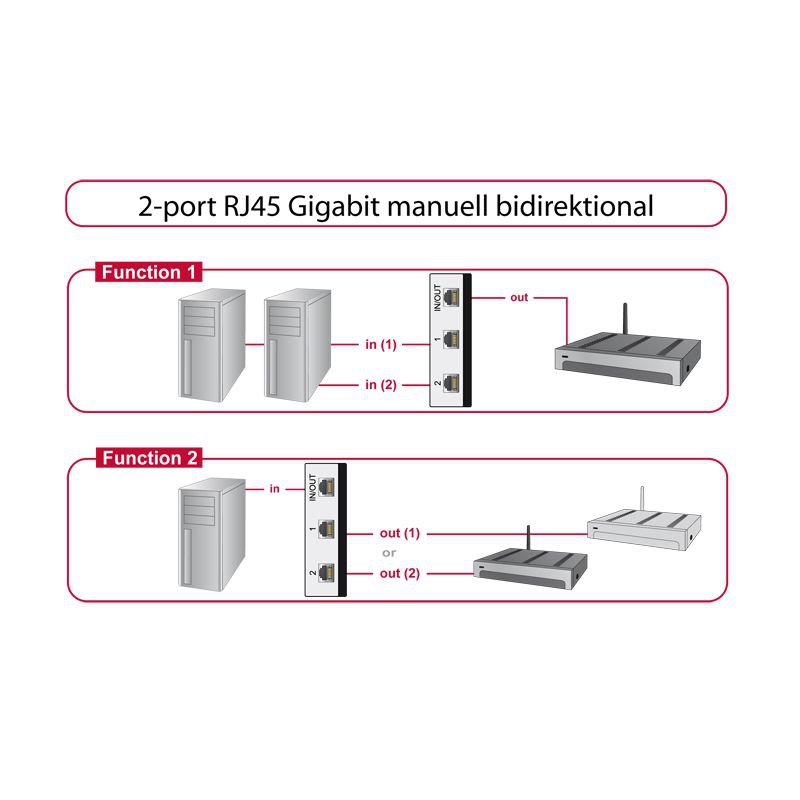 DataSwitch RJ45 Umschalter AB Cat.5e Gigabit Netzwerk DSL ISDN