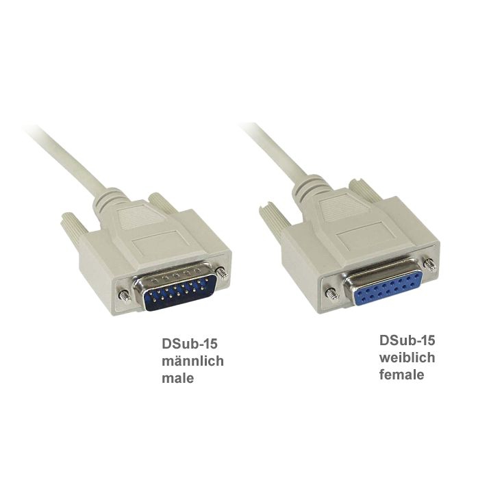 - Stecker DSub-15 männlich an DSub-15 weiblich (Stecker/Buchse)