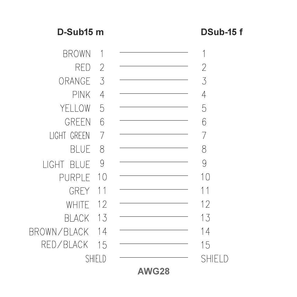 - Pinout: alle 15 Kontakte 1-zu-1 verbunden