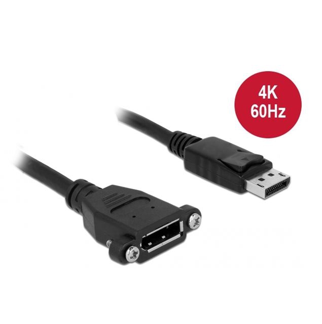DisplayPort-Kabel für Panel-Montage, 1m, DisplayPort Buchse anschraubbar an DisplayPort Stecker, kompatibel Displayport 1.2, 4K 60Hz, Schraubenabstand 27mm