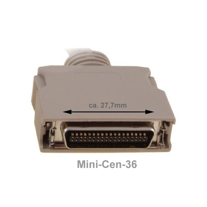 Das hier angebotene parallele Kabel ist ein spezielles Anschlußkabel für Drucker mit Mini-Centronics-Schnittstelle LPT. Der druckerseitige Spezialstecker des Kabels ist als 36-poliger Mini-Centronics-Stecker ausgeführt.