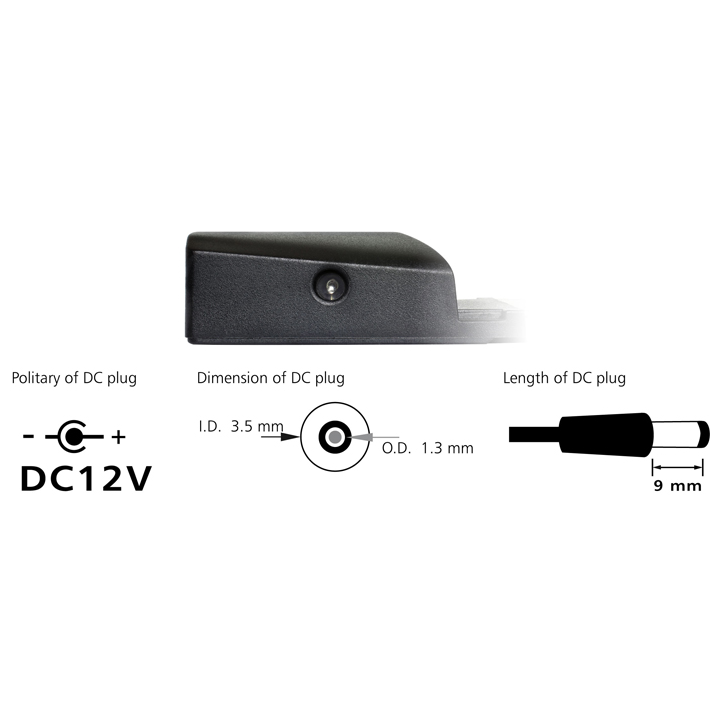 Die 800er-ExpressCard verfügt seitlich über eine Powerbuchse. Der Einsatz eines externen Netzteils ist dann erforderlich, wenn die angeschlossen Firewiregeräte keine eigene Stromversorgung besitzen. Das 12V-Netzteil gehört nicht zum Lieferumfang, ist jedoch bei uns erhältlich. Spezifikation des Stromanschlusses: 12 V, Masse außen, Plus innen (Maße: innen: ø ca. 1,3 mm, außen: ø ca. 3,5 mm, Länge: ca. 9 mm)