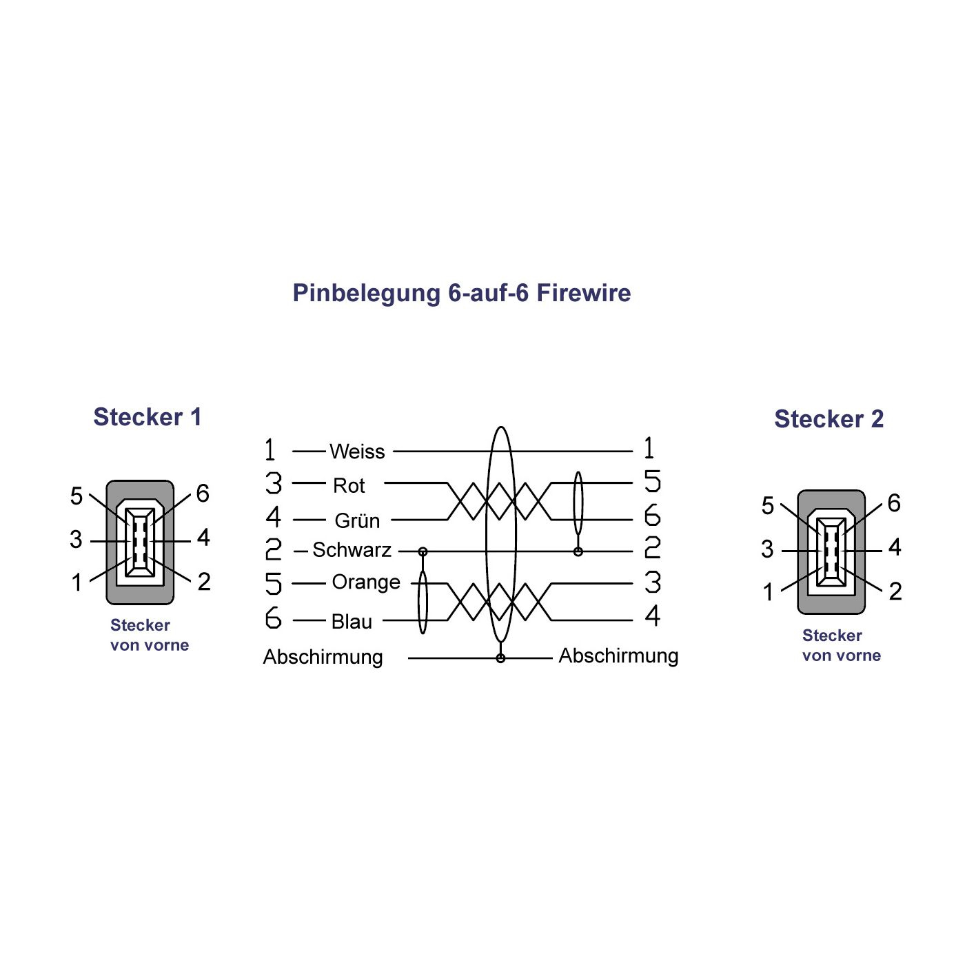 Das Firewirekabel ist beidseitig mit 6-poligen Stecker ausgestattet.