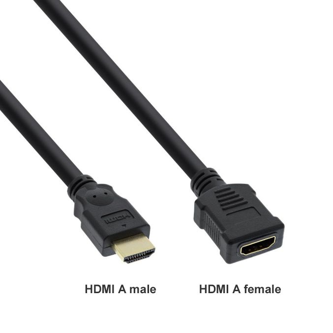 HDMI-Verlängerungskabel 2m, 19-pol. Stecker (A) auf 19-pol Buchse (A), vergoldete Kontakte, schwarz, zur Übertragung von digitalen Video- u. Audio-Signalen