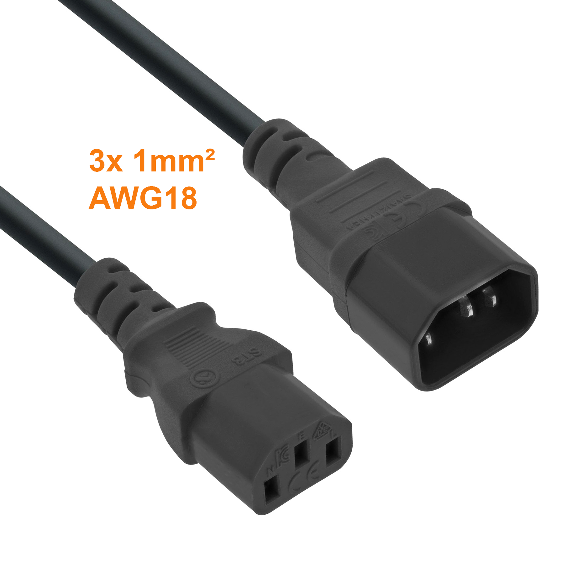 Kaltgeräte-Verlängerungskabel C13-C14 3x1mm² 3m