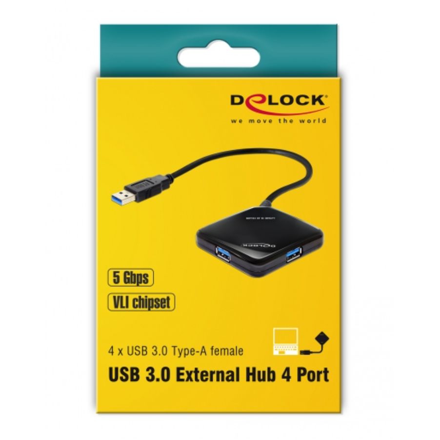 USB 3.0 HUB mit 4 Ports von DELOCK (Super Speed), schwarz