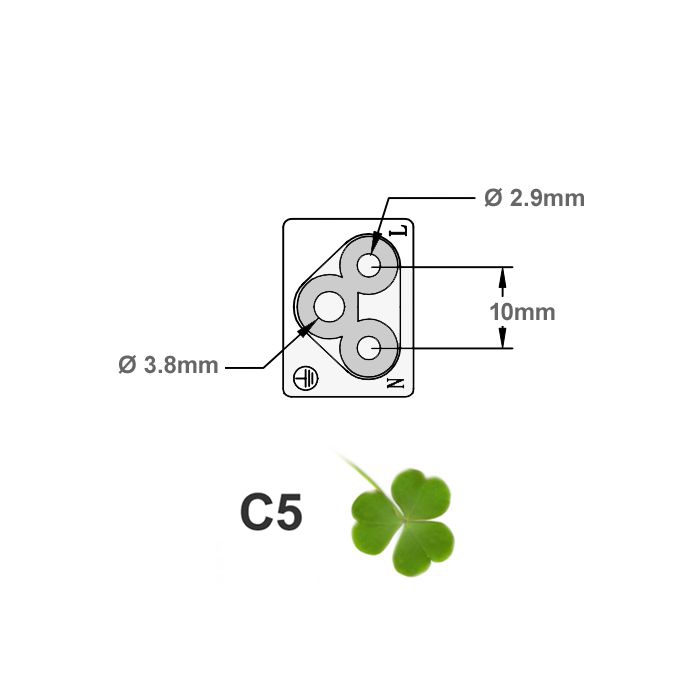 - Spezialstecker C5 in Kleeblatt-Form (3 runde Kontakte als V angeordnet)