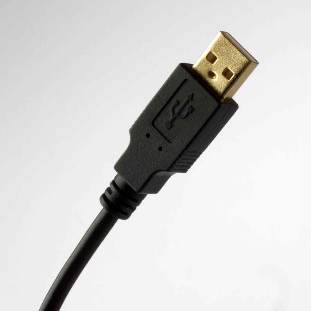 Die Zuverlässigkeit der Funktionsweise wird durch die vergoldeten Kontakte erhöht. Das High-End-Kabelmaterial ist doppelt abgeschirmt (flexible Aluminiumfolie + Geflecht-Umhüllung) und beide Stecker sind intern komplett metallgeschirmt. Die Zugentlastung ist bei beiden Steckern angegossen. Das Kabel ist USB 2.0 und USB 1.1 geeignet, also abwärtskompatibel, und unterstützt die maximale USB 2.0 Geschwindigkeit von 480 MBit/s (entspricht 60 MByte/s).