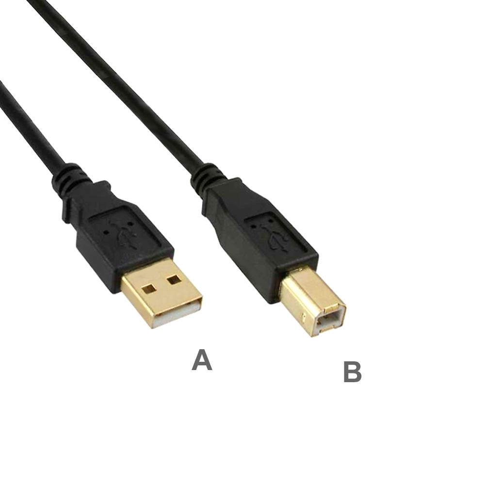 USB-Kabel vom Typ Stecker A auf Stecker B werden z.B. häufig für Drucker, HUBs, Umschalter, Scanner und Webcams eingesetzt. A/B-Kabel dienen allgemein zum Anschluß von peripheren USB-Komponenten an den Computer. Der Stecker Typ A wird am PC eingesteckt. Der Stecker Typ B ist der Standardanschluss für USB-Geräte. Durch die verschiedenen Steckertypen wird sichergestellt, dass keine Kurzschlüsse bzw. Ringschaltungen entstehen können.