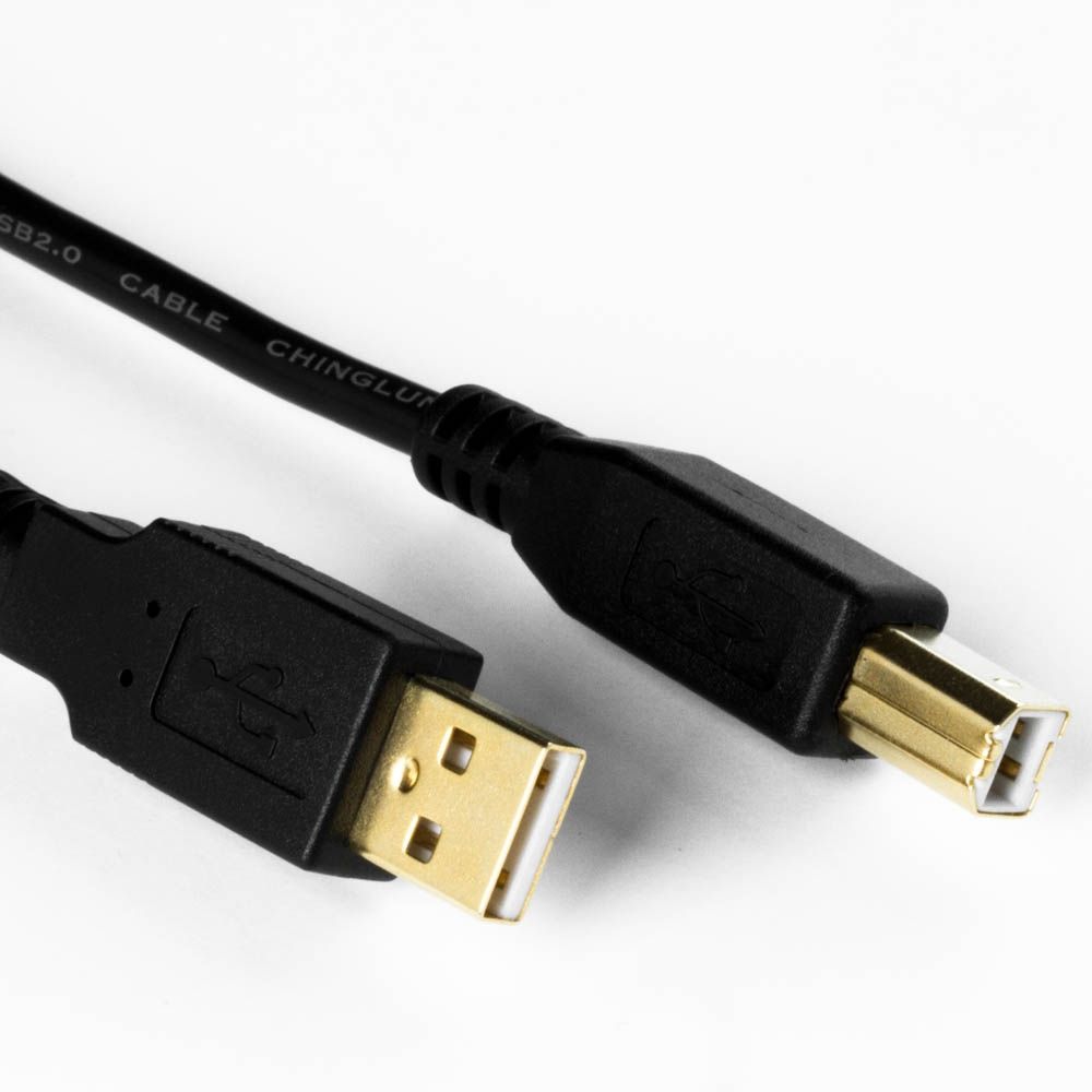Kurzes USB 2.0 Kabel AB PREMIUM-Qualität, vergoldete Stecker, schwarz, 50cm