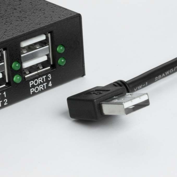 Das hier angebotene USB-Kabel hat einen um 90° abgewinkelten USB-Stecker Typ A. Dadurch eignet sich das Kabel besonders für den platzsparenden Anschluss am PC oder Notebook. Der Stecker-Überstand beträgt nur ca. 15mm. Hierfür haben wir extra ein spezielles Tooling anfertigen lassen.