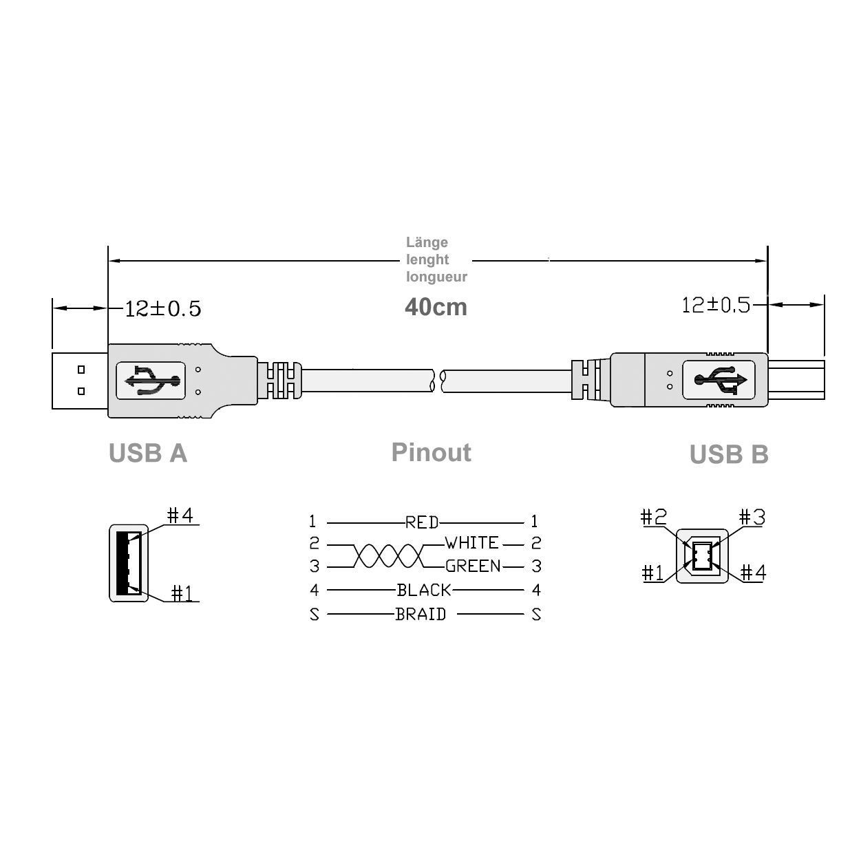 Kurzes USB-Kabel PREMIUM-QUALITÄT USB 2.0 A-auf-B silber-transparent 40cm