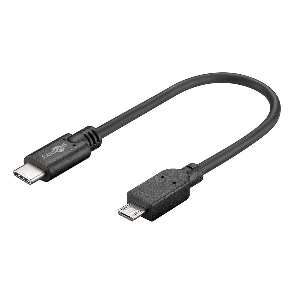 USB-Kabel Type-C™ Stecker auf USB 2.0 Micro B Stecker, extra kurz 20cm, schwarz